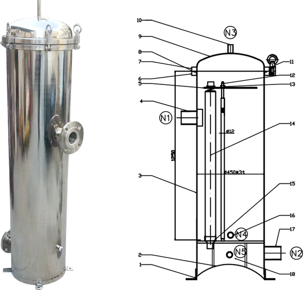 本過濾器由簡體與管板組成,管板內(nèi)微孔由PE管排列而成,裝在密閉筒體內(nèi),被過濾介質(zhì)側(cè)面進入體內(nèi),通過濾棒進行過濾,液體從底部排出,濾渣經(jīng)’壓縮空氣反吹"或“氣液混合反吹法”排出。它廣泛地應用于化工、制藥、紡織、化工、冶金、機械、電鍍等行業(yè),同時可用于水或廢水過濾,水與溶液等液體的精密過濾或精密復濾。精密過濾器按照客戶需要加工定做。