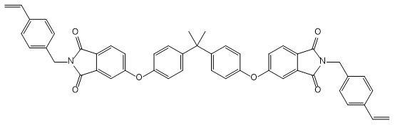 英文名稱 | N,N’-bis[(4-ethenylphenyl)methyl]-2,2-bis[4-(3,4-dicarboxyphenoxy)phenyl]propane diimide |